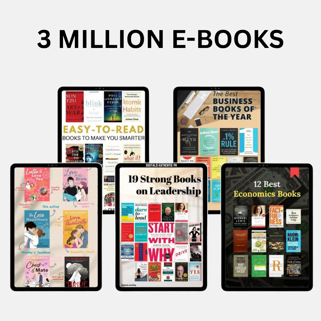 Access the ultimate e-book vault covering every genre imaginable. Perfect for resellers, students, coaches, and hustlers looking for ready-to-use content or instant income sources!